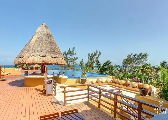 An open-plan kitchen is provided at Fabulous Playa Getaway At 38Th And Beach Plus 2 Pools Onsite apartment Playa Del Carmen, Quintana Roo airport is within 5 minutes by car. Access to snorkelling, diving, and cycling is offered for active guests.